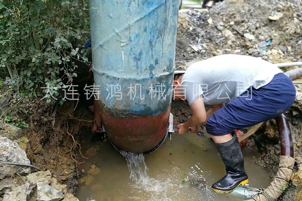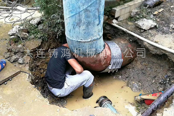 現(xiàn)場工況:貴州都勻水務某管段發(fā)生泄漏,經過現(xiàn)場工作人員排查,鎖定一鑄鐵彎頭處,管徑DN400,管道帶有輕微變形,現(xiàn)場操作空間狹小,水從漏點處噴出,壓力較大,使用鑄鴻彎頭修補器帶壓進行修復。(泄漏處)(安裝修補器)(安裝修補器)安裝時間:在現(xiàn)場人員的齊心協(xié)力下,用時20分鐘便完成修補。